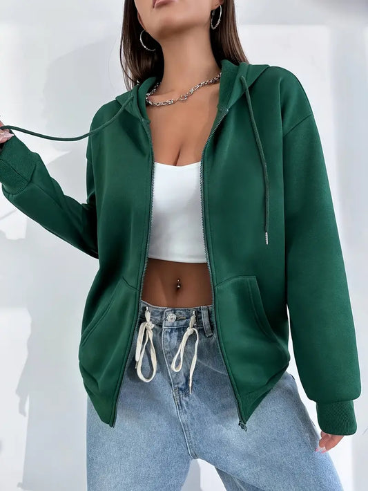 Abigail® | Einfarbige Langarm Kapuzenjacke Mit Reißverschluss Für Frauen