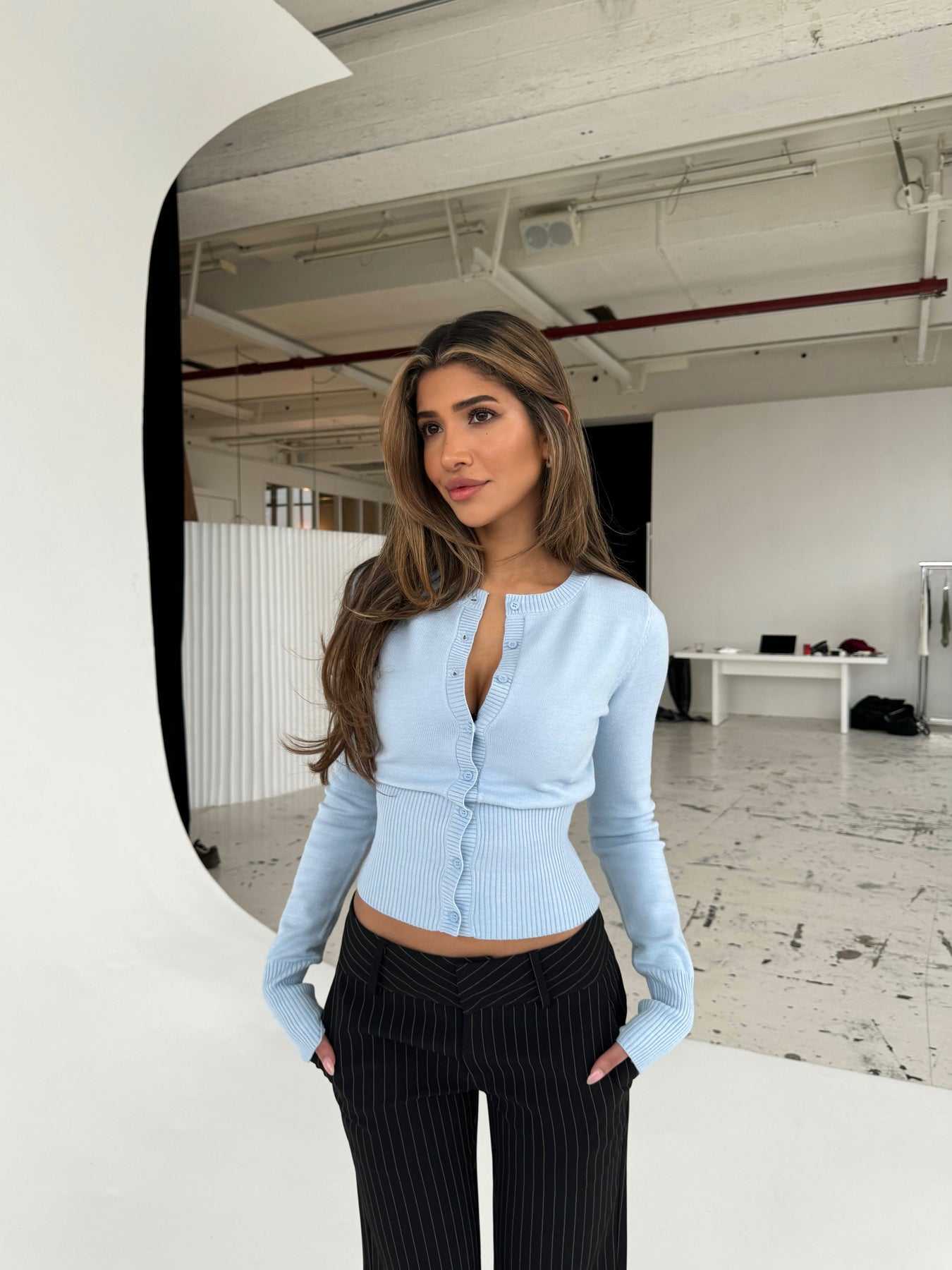 ✔ Button-front moment – Style it closed, half-open, or layered