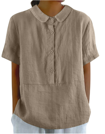 Santorini – Einfarbiges Damen-Freizeithemd mit Rundhalsausschnitt und Knöpfen.