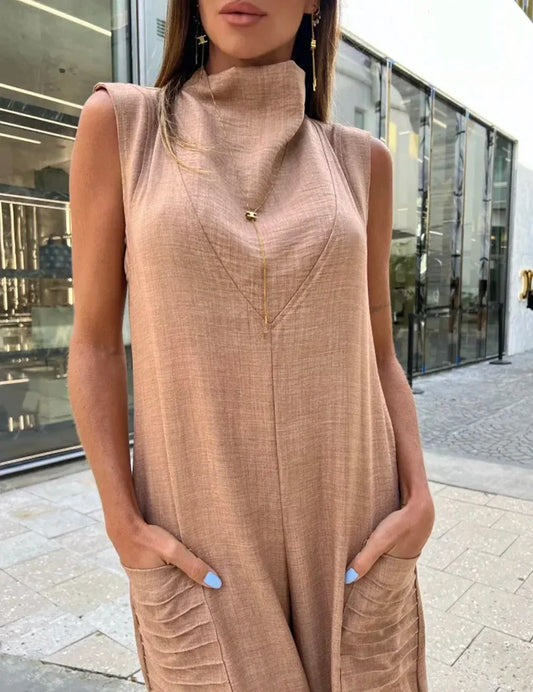 Lässiger, lockerer, ärmelloser Overall mit Taschen