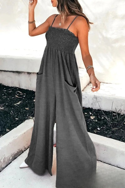 Brenda – Schlichter Overall mit weitem Bein und Spaghettiträgern