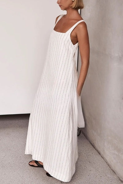 Elena – Schlichtes und atemberaubendes A-Linien-Maxikleid mit Nadelstreifendetail und quadratischem Ausschnitt