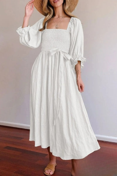 Evelyn – Elegante A-Linien-Kleider mit einfarbigen Rüschen und quadratischem Ausschnitt