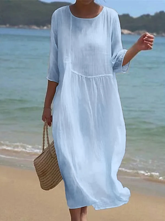 Greattioa – ärmelloses, schlichtes, lockeres Sommer-Urlaubskleid aus Baumwolle und Leinen mit Rundhalsausschnitt