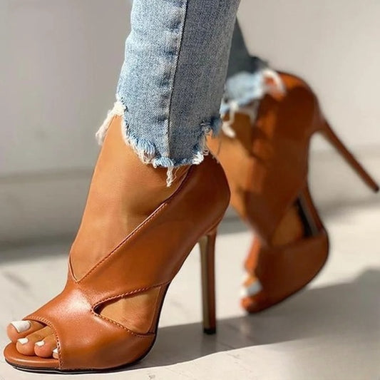 Sheyla – Glatt geschnittene, dünne PU-Absätze mit offener Zehenpartie