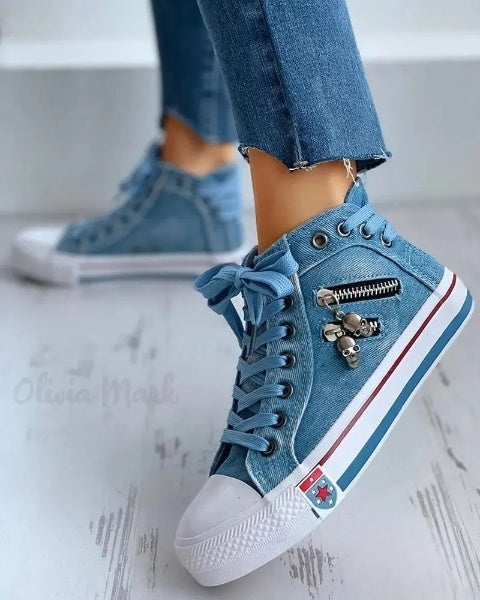 Emma - Skeleton Zipper Lace Up Casual Sneakers