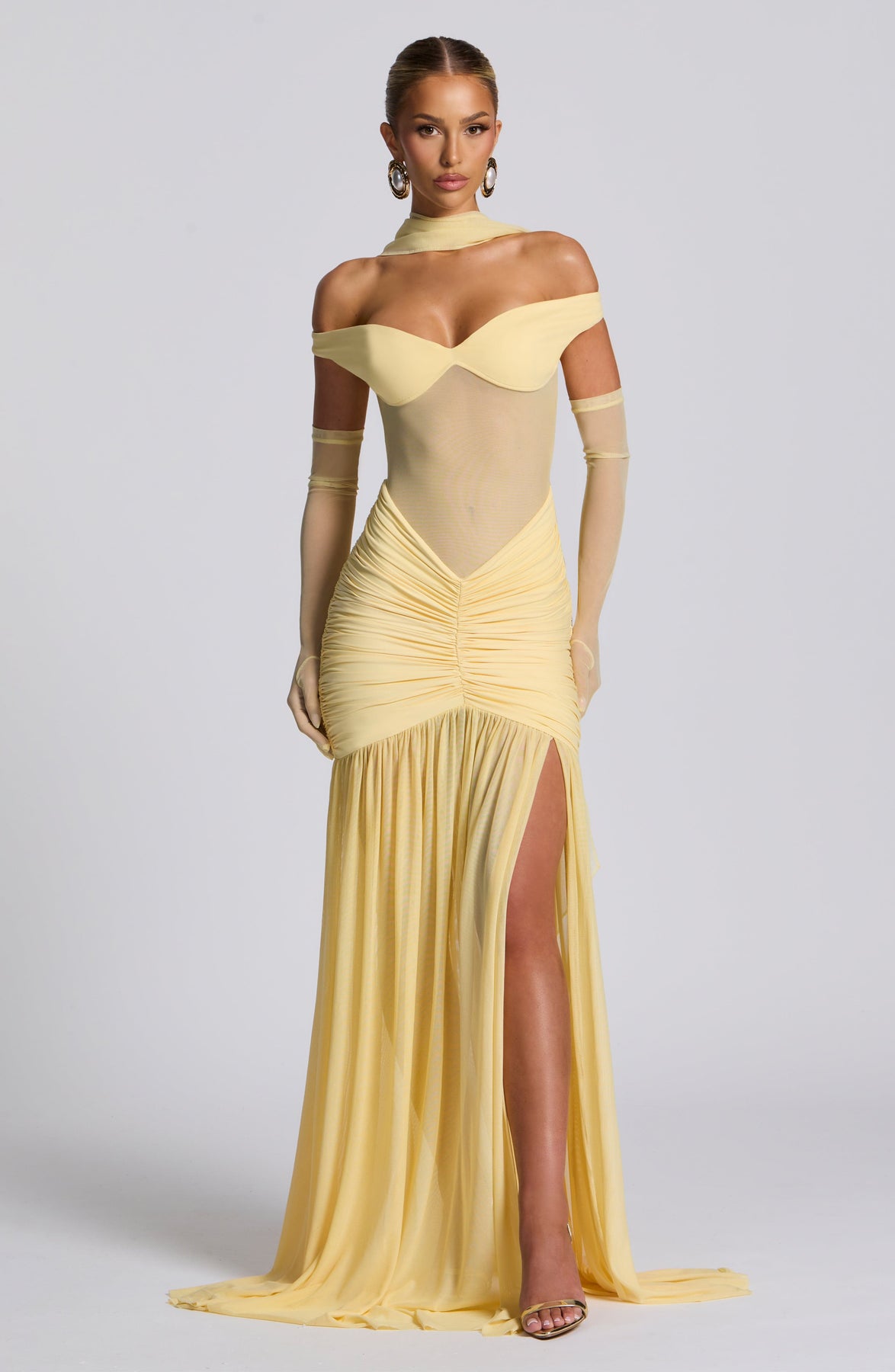 Los guantes Eli en color limón ofrecen un toque sofisticado con su corte por encima del codo. Confeccionados en suave malla elástica y elegantemente sin forro, estos llamativos accesorios añaden un toque refinado a cualquier conjunto.