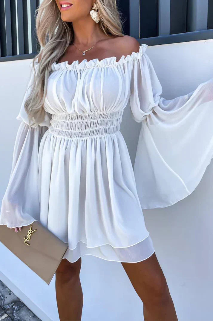 Laura - Schlichte, legere, schulterfreie Kleider, schulterfreie Rockkleider, mit festen Rüschen