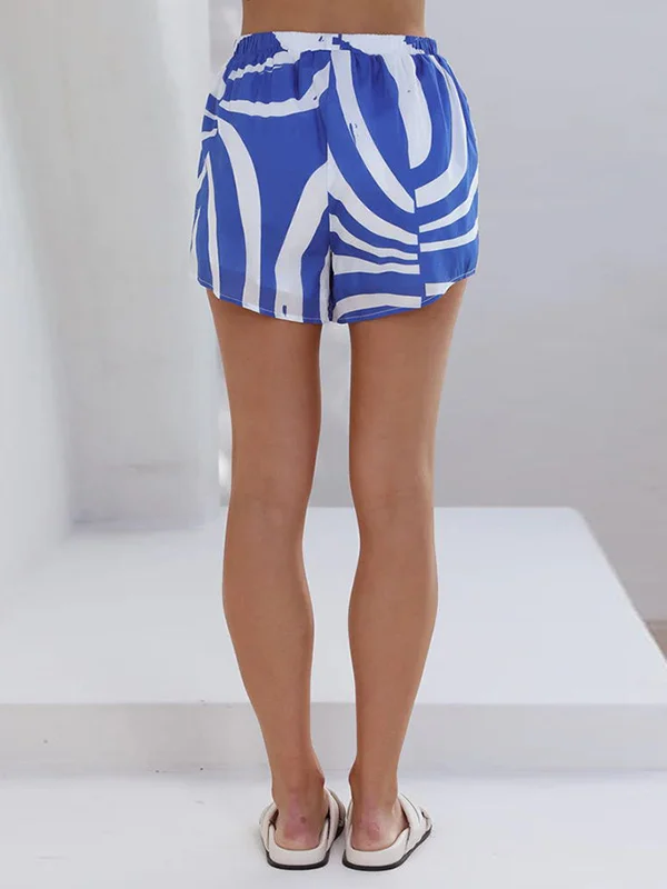 Mila – Kontrastfarbenes, geteiltes, lockeres, asymmetrisches Blusen- und Stretch-Shorts-Zweiteiler-Set