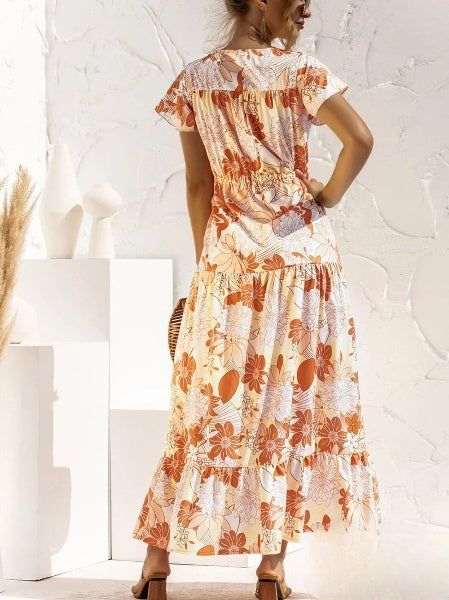 Paula - Langes Kleid mit Blumendruck und V-Ausschnitt