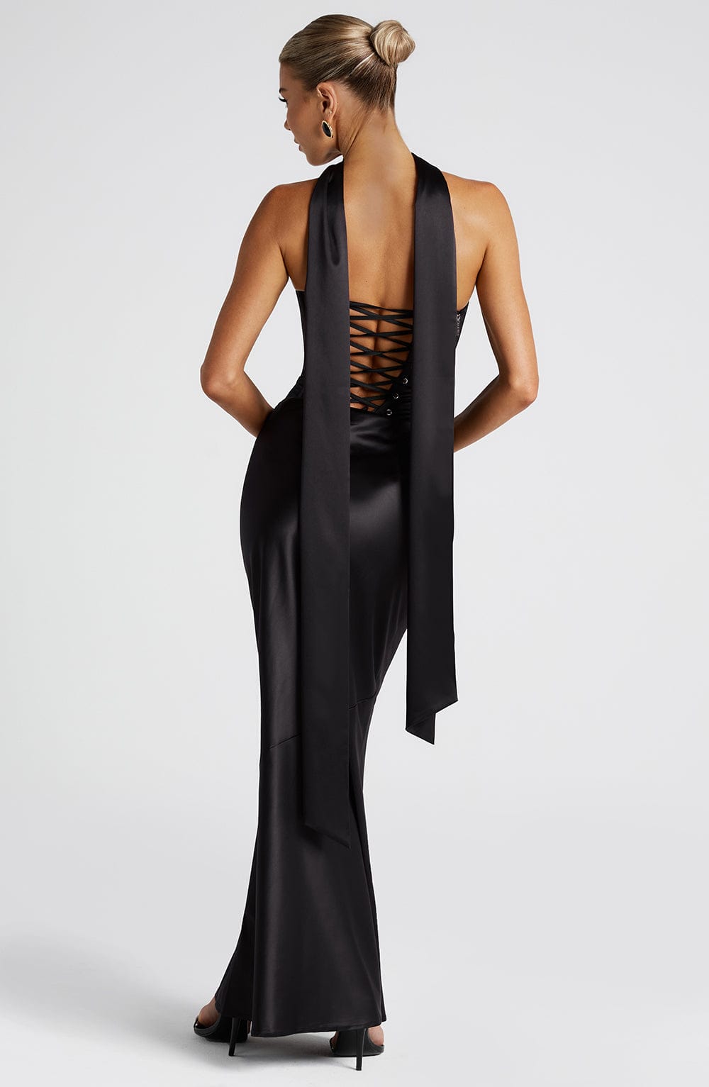 Add a touch of elegance to any outfit with the Sybil Scarf in Black. Crafted from soft flowing satin, this scarf drapes beautifully around the neck to elevate any look.
